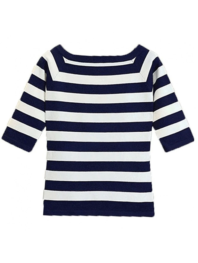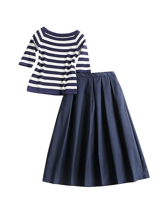Women’s Two Piece Dress Set Casual Dress Skirt Set Daily Going Out Fashion Streetwear Ribbed Print Midi Dress Crew Neck Short Sleeve Stripe Slim Blue Fall S M L XL XXL