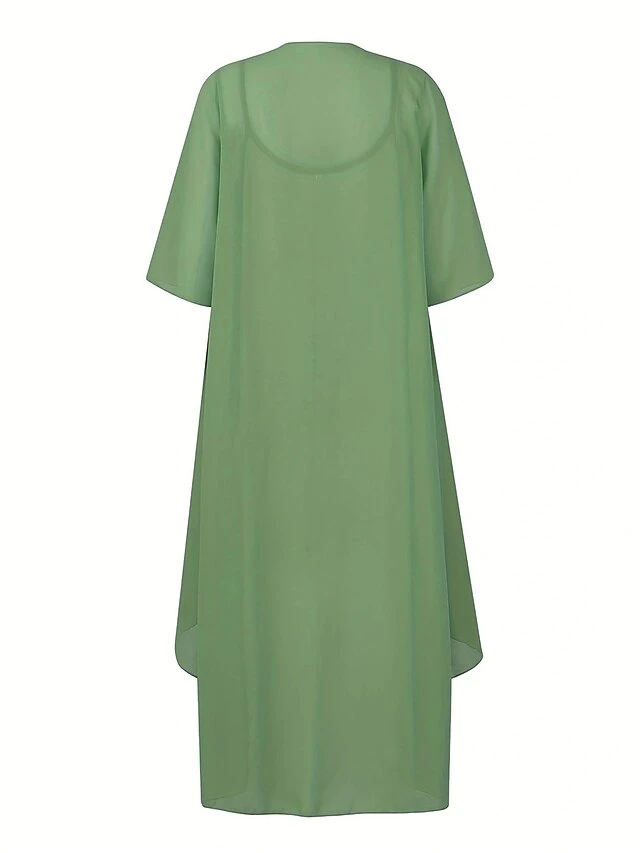 Women’s Two Piece Dress Set Casual Dress Swing Dress Daily Date Fashion Streetwear Print Midi Dress Strap 3/4 Length Sleeve Floral Loose Fit Blue Green Fall Winter S M L XL XXL