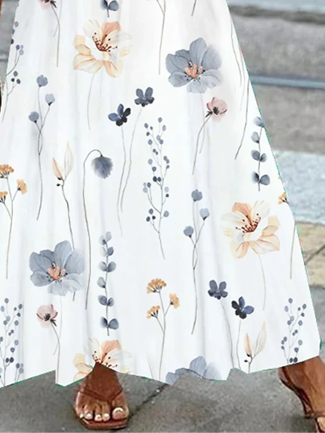 Women’s Two Piece Dress Set Casual Dress Swing Dress Outdoor Daily Fashion Elegant Lace Up Lace Long Dress Maxi Dress Crew Neck Short Sleeve Floral Regular Fit Blue Summer Spring S M L XL XXL