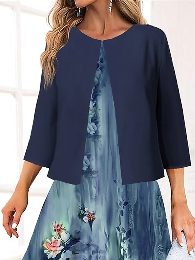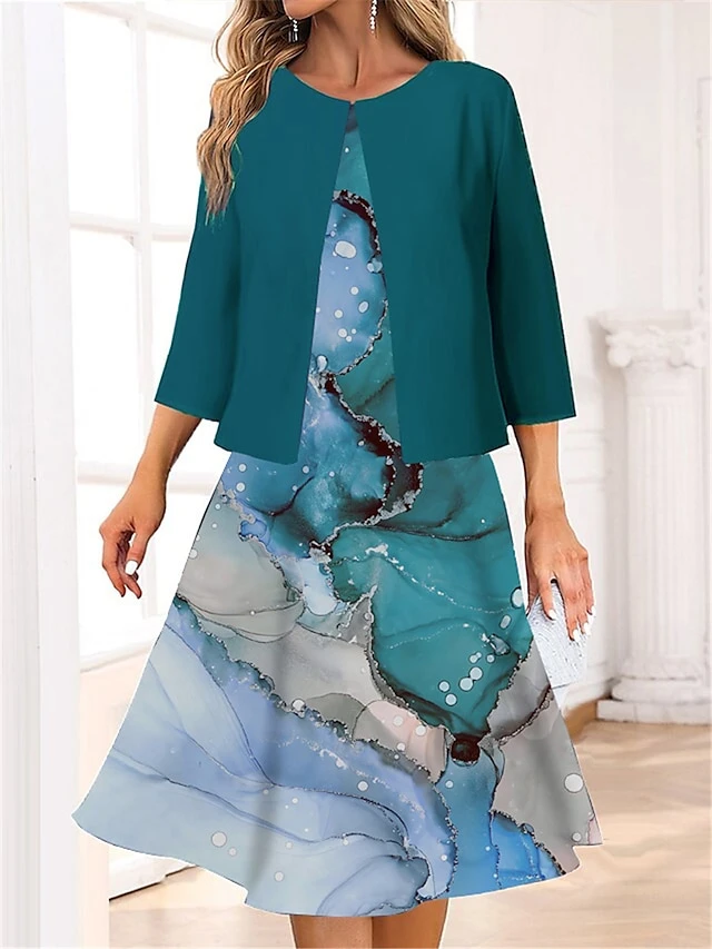 Women’s Two Piece Dress Set Casual Dress Swing Dress Outdoor Office Fashion Streetwear Print Midi Dress Crew Neck 3/4 Length Sleeve Floral Regular Fit Blue Green Spring Fall S M L XL XXL
