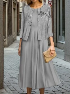 Women’s Two Piece Dress Set Casual Dress Swing Dress Outdoor Office Fashion Streetwear Print Midi Dress Crew Neck 3/4 Length Sleeve Floral Regular Fit Blue Purple Green Fall Winter S M L XL XXL