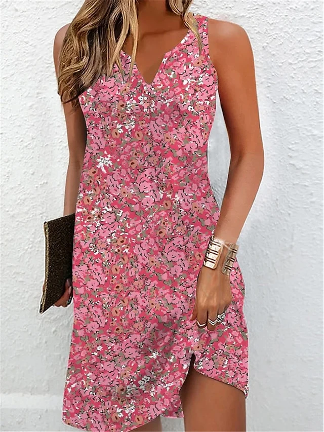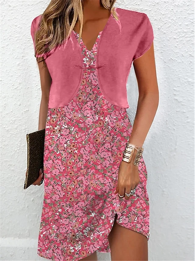 Women’s Two Piece Dress Set Casual Dress Tank Dress Outdoor Daily Fashion Modern Print Mini Dress V Neck Short Sleeve Floral Regular Fit Pink Summer Spring S M L XL XXL