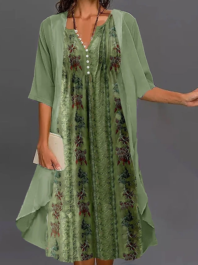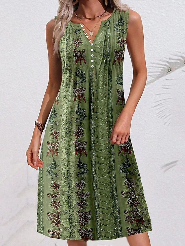 Women’s Two Piece Dress Set Casual Dress Tank Dress Outdoor Daily Fashion Streetwear Button Print Midi Dress V Neck Sleeveless Floral Regular Fit Green Summer Spring S M L XL XXL