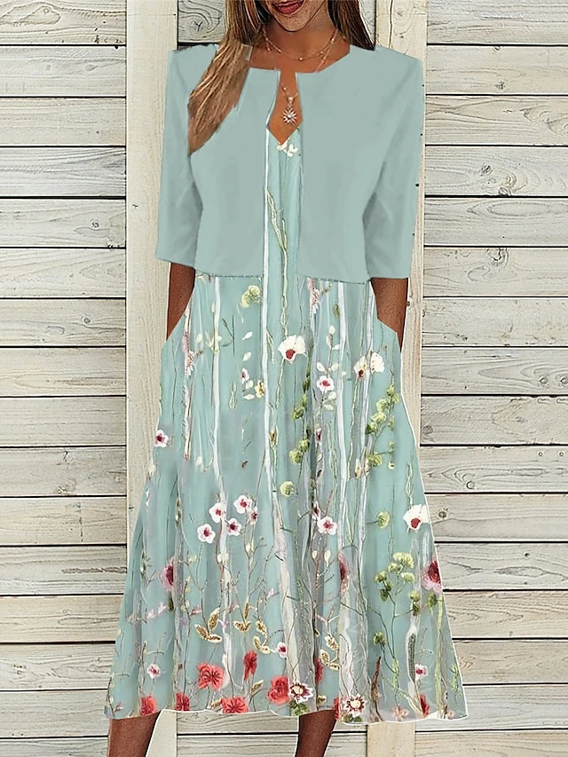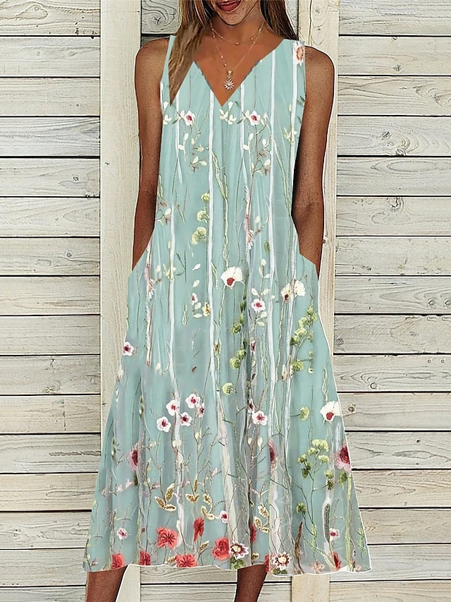 Women’s Two Piece Dress Set Casual Dress Tank Dress Outdoor Daily Fashion Streetwear Pocket Print Maxi Dress V Neck Sleeveless Floral Regular Fit Green Summer Spring S M L XL XXL