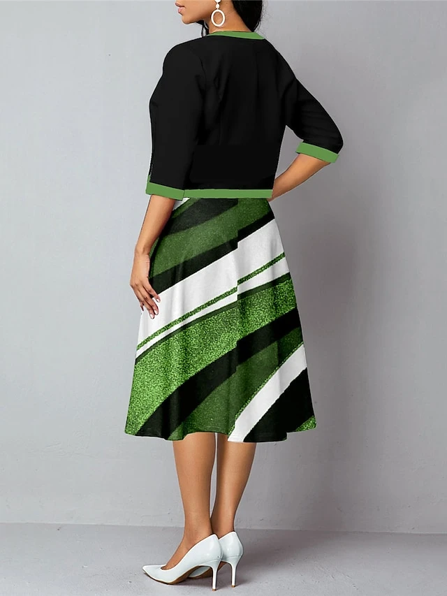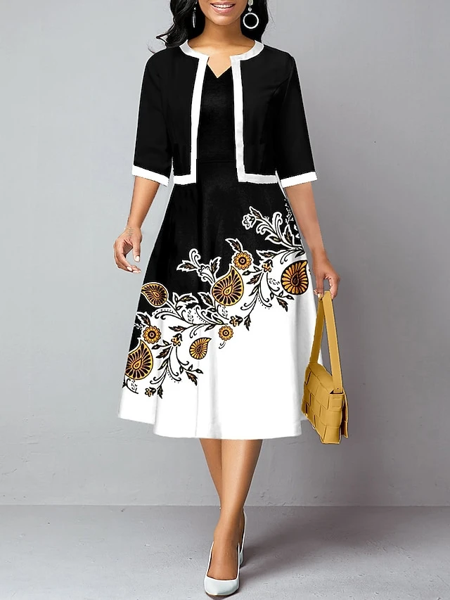 Women’s Two Piece Dress Set Casual Dress Tank Dress Outdoor Daily Fashion Streetwear Pocket Print Midi Dress V Neck 3/4 Length Sleeve Floral Geometric Regular Fit Yellow Green Summer Spring S M L XL