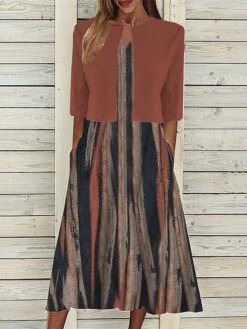 Women’s Two Piece Dress Set Casual Dress Tank Dress Outdoor Daily Fashion Streetwear Pocket Print Midi Dress V Neck 3/4 Length Sleeve Floral Regular Fit Navy Blue Blue Purple Summer Spring S M L XL