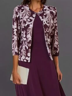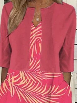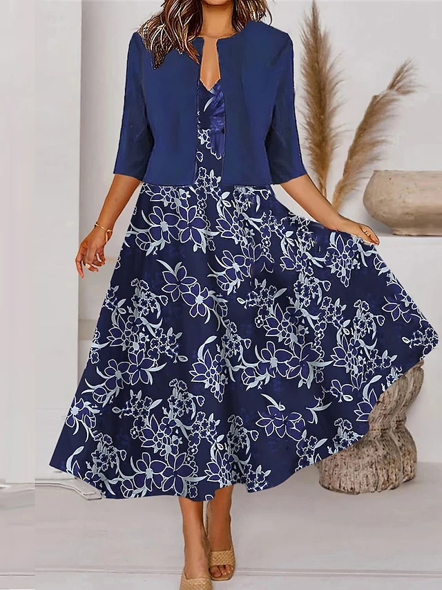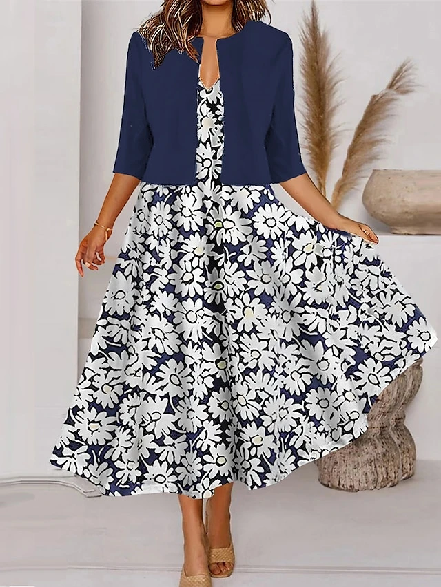 Women’s Two Piece Dress Set Casual Dress Tank Dress Outdoor Daily Fashion Streetwear Pocket Print Midi Dress V Neck 3/4 Length Sleeve Floral Regular Fit Pink Navy Blue Royal Blue Spring Fall S M L XL