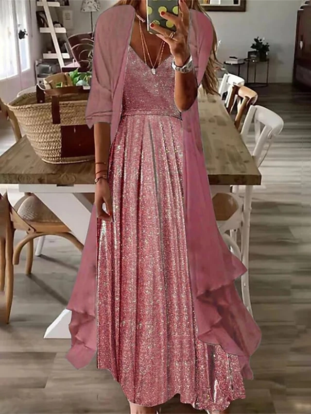Women’s Two Piece Dress Set Loose Dress Party Outdoor Fashion Streetwear Ruched Maxi Dress V Neck Half Sleeve Plain Loose Fit Red Sky Blue Purple Summer Spring S M L XL XXL