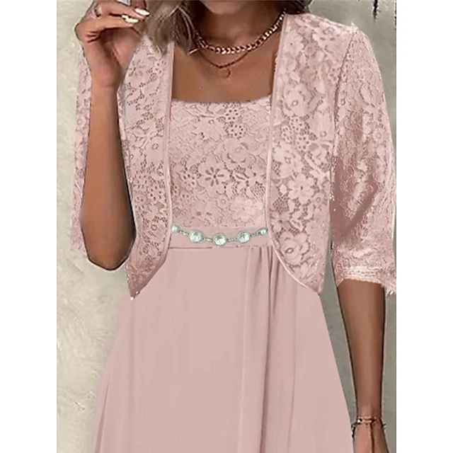 Women’s Two Piece Dress Set Party Dress Lace Dress Party Wedding Guest Elegant Modern Lace Patchwork Midi Dress Crew Neck Half Sleeve Floral Plain Regular Fit Pink Blue Purple Summer Spring S M L XL
