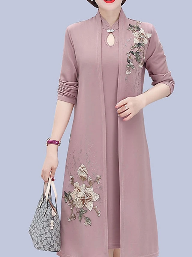 Women’s Two Piece Dress Set Print Dress Outdoor Vacation Casual Print Midi Dress Stand Collar Long Sleeve Floral Loose Fit Pink Wine Blue Fall Winter XL XXL XXXL 4XL 5XL